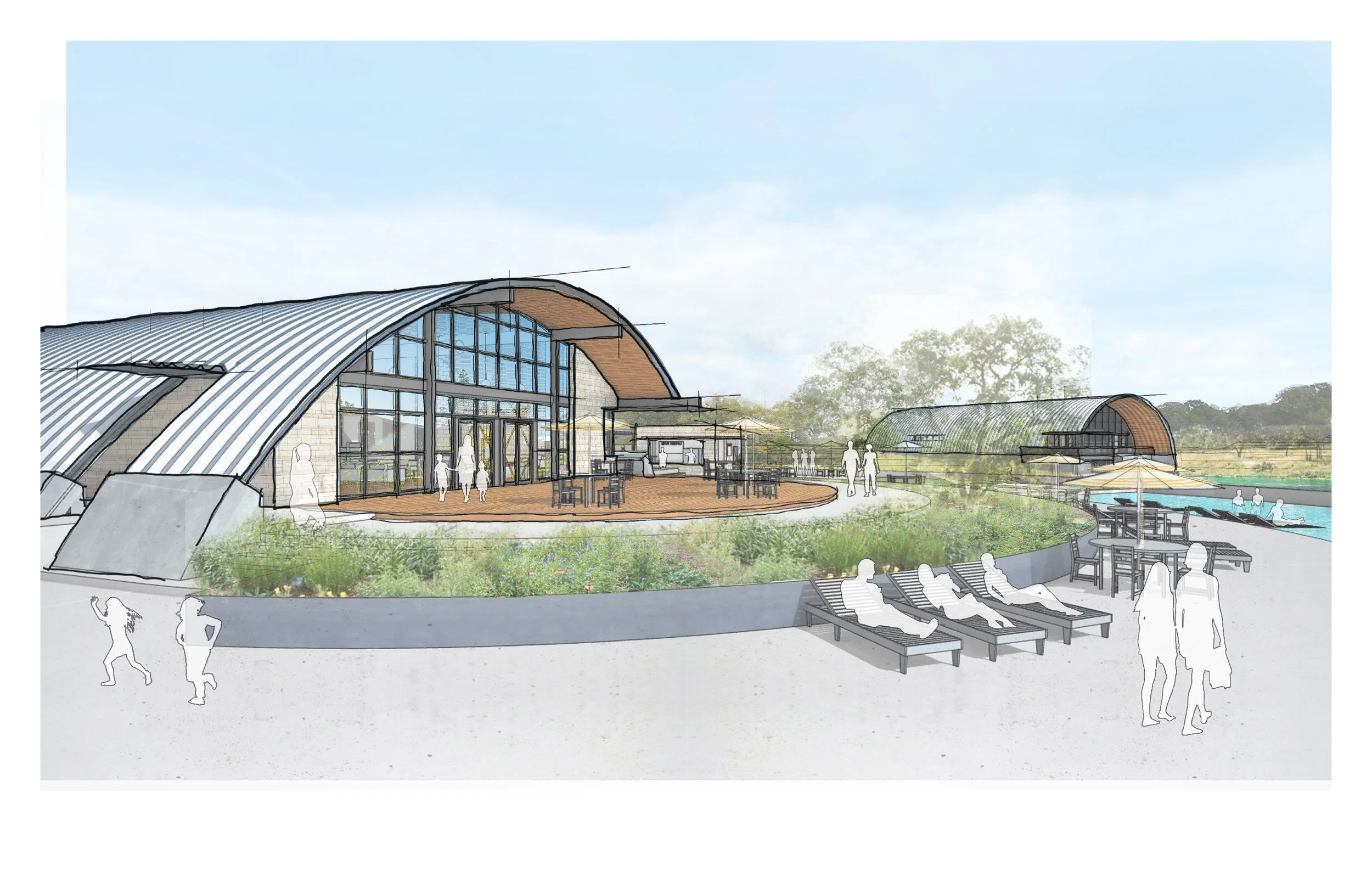 Progress on the design of amenity buildings for a luxury RV resort in Central Texas.